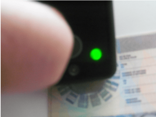 The product will react to excitation by an incident beam from a hand held pointing device to generate an audible and clearly identifiable bleep, whilst simultaneously generating a visible signal colour change from blue to green as illustrated.